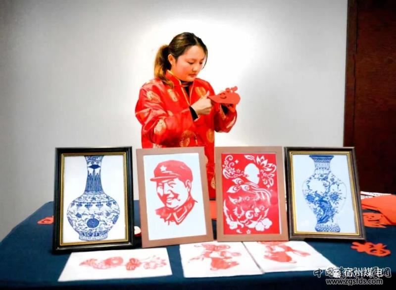 中庙街道还专门安排了非物质文化遗产传承人现场献艺,与春联创作交相辉映,使现场热闹非凡。中国剪纸历史悠久,也是传统工艺品之一。只见那位巢湖姑娘,用自己灵巧的双手,剪出一幅幅大气逼真、喜庆美观、活灵活现的“伟人像”、“福”字、“玉兔”等艺术剪纸,即传承了非遗剪纸的历史文化,也展现了对兔年新春的吉祥祝福。