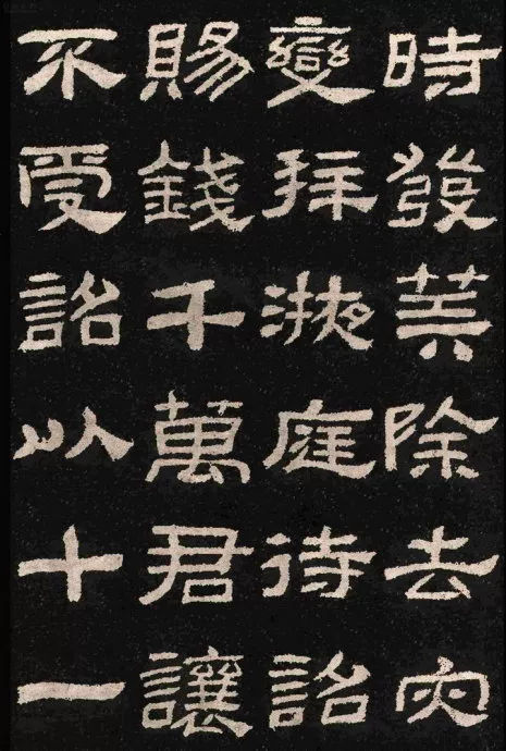 很多人应该猜到了此碑是《肥致碑》,对于评价,只想说此碑不俗。我们重点先看特色的撇捺,有别于孔庙三碑的大撇重捺,波画的提按过渡不甚明显,于方直中寓圆巧,笔画粗细相间,生动自然。