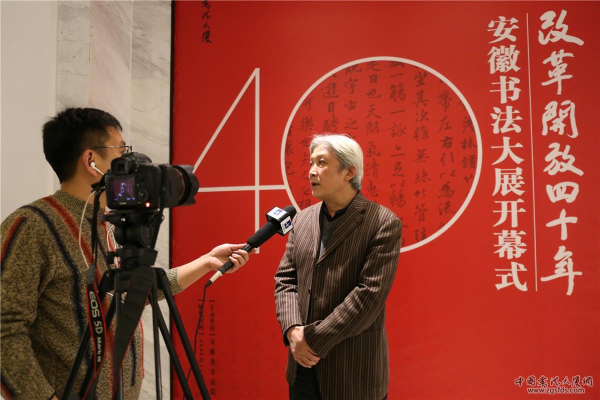 《中国书法大厦报》副总编辑汤永志现场接受媒体记者采访