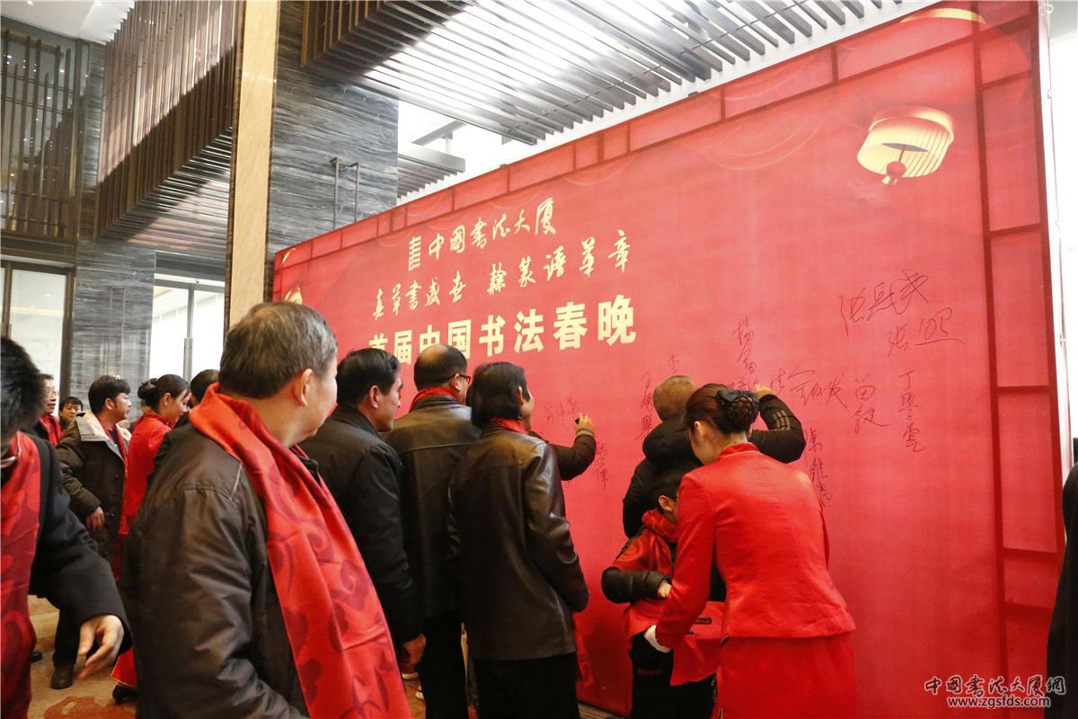 晚会现场,气氛热烈,互动环节——书法知识有奖问答将晚会推向高潮,更有著名书法家曾来德、周志高、张良勋等为现场观众泼墨挥毫,亲笔书写猪年送“福”。最后,晚会在中国书法大厦人合唱的《爱我中华》中圆满落幕。