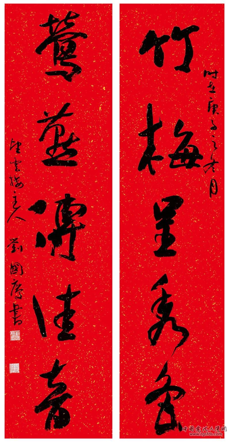 笔尖上浓郁的年味是传承千年的宝藏,记忆里红红火火的福字是老祖宗留传千年的背影。中国春节蕴含着、承载着中华优秀的文化传统和价值观,是中国人思想传统和行为方式的一种体现,传递着“和谐”“共享”“欢乐”“家国”的理念和情怀,意味着感恩、团聚与兴旺。春联在中国有着悠久的历史和深厚的群众基础,早在唐代开元年间,民间就已经有了在门上张贴吉祥、喜庆之语的春联样式,敦煌遗书中就有春联“三阳始布,四序初开”之记载。爆竹声声辞旧岁,千家万户贴春联,这已成为新春佳节期间中国人千百年来绵延不绝的一种文化活动。春联作为一种表达吉庆祥和节日气氛又具艺术审美价值的传统文化样式,寄寓着人们对美好生活的向往和希冀,又与时俱进,具有丰富的时代内涵,饱含着催人奋进的时代精神。